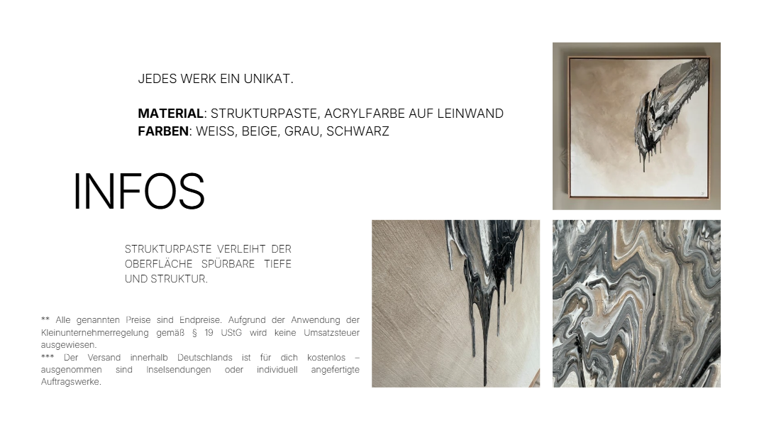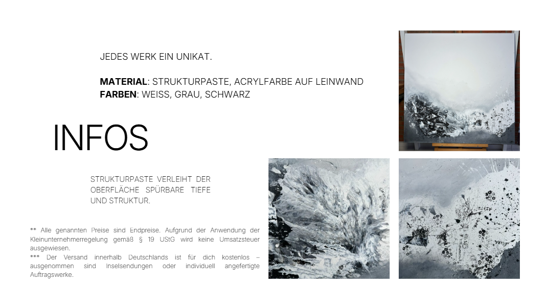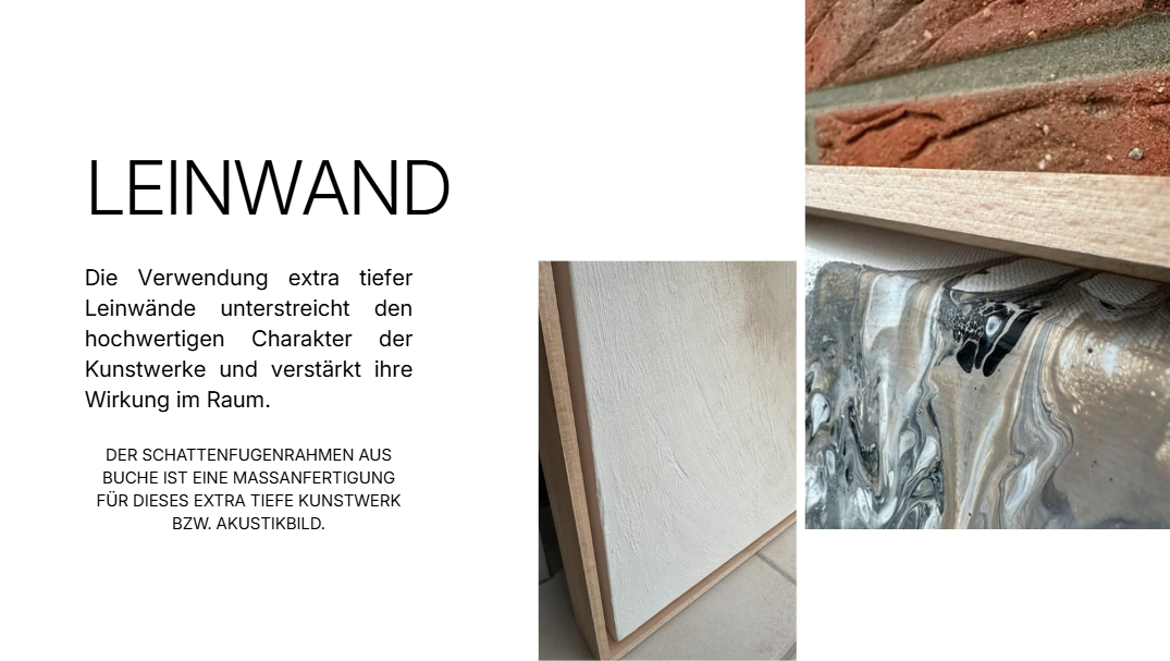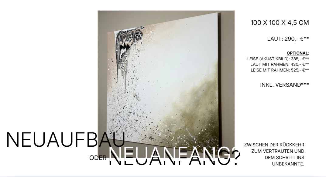 (Fast) jedes meiner Werke entsteht als „laut & leise“-Kunstwerk – das bedeutet: Du kannst es entweder als klassisches Gemälde („laut“) oder als funktionales Akustikbild („leise“) bestellen. Beide Varianten sind handgefertigte Unikate.