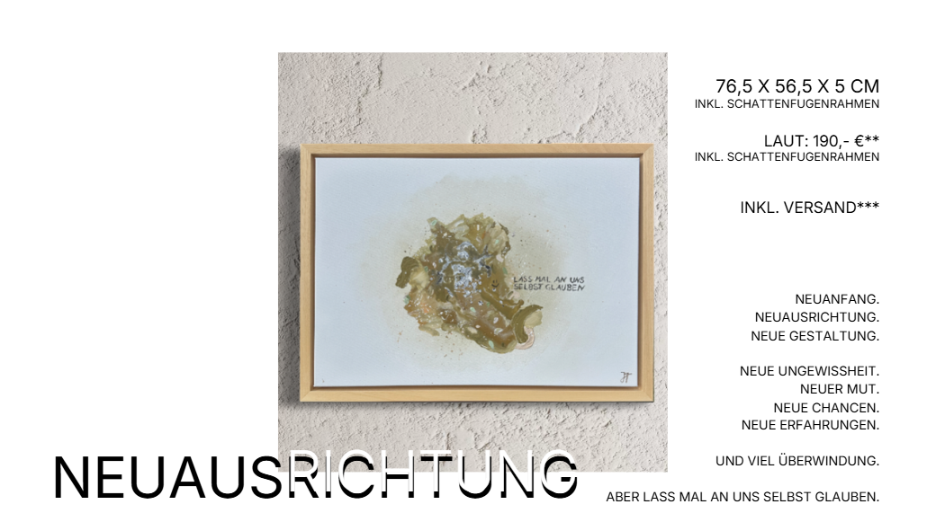 Jedes Werk braucht etwas Zeit: In der Regel erfolgt der Versand innerhalb von 5 Werktagen nach Zahlungseingang. Bei besonderen Wünschen oder individuellen Anpassungen kann es etwas länger dauern – in jedem Fall halte ich dich persönlich auf dem Laufenden.